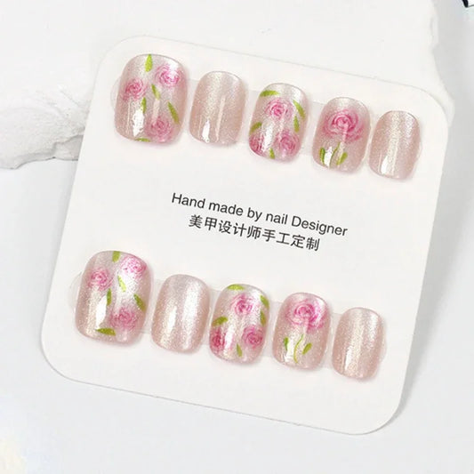 Regular price $9.99 USDRegular priceUnit price / per$16.89 USDSale price $9.99 USD10PCS Handmade Press On Nails Reflective Glitter Cat Eye Fake Nails With Pink Heart Design Glossy Short False Nails For Women