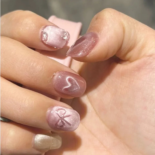Regular price From $9.99 USDRegular priceUnit price / per$17.89 USDSale price From $9.99 USD10Pcs Cat Eye Heart False Nail Spa Cat Eye Press on Nails Short Ellipse Bow Tie Design Pink French Fake Nails for Women/Girls