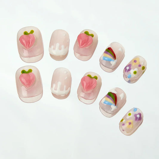 Regular price $7.99 USDRegular priceUnit price / per$15.89 USDSale price $7.99 USD10Pcs Sweet Peach Handmade Nails Short Press on Colorful Rainbow Design Acrylic Nails False Removable Nails Art Tips for Girls