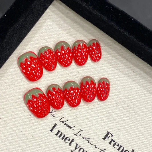 Regular price From $7.99 USDRegular priceUnit price / per$18.99 USDSale price From $7.99 USD10Pcs 3D Strawberry Handmade Fake Nails Short Oval Red Polka Dot & Fruit Design False Nails Press On Nails for Women/Girls Wear