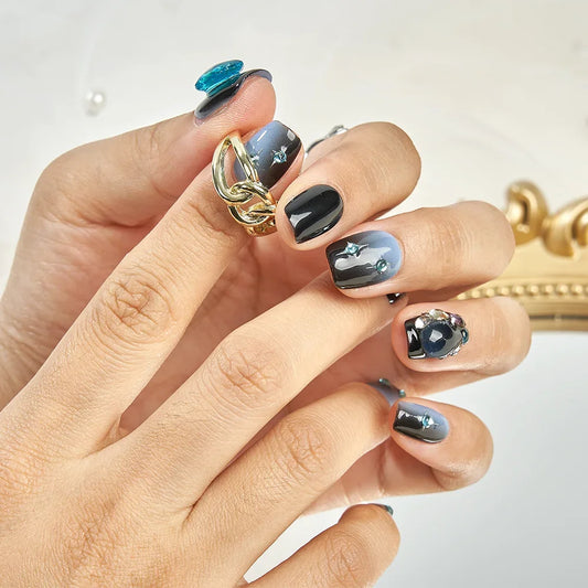 Our press-on nails come with pre-applied adhesive, eliminating the need for messy glue. Simply press on for a secure, natural-looking fit that lasts. Perfect for busy individuals who want a quick and easy manicure without the hassle of drying times or smudges.